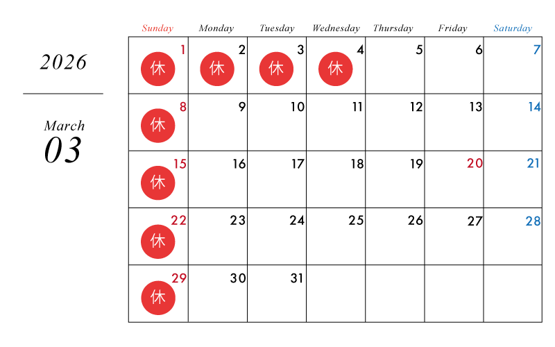 【休業期間】即日 〜 3月2日(月)まで※3月3日(火)より通常営業を再開する予定です。